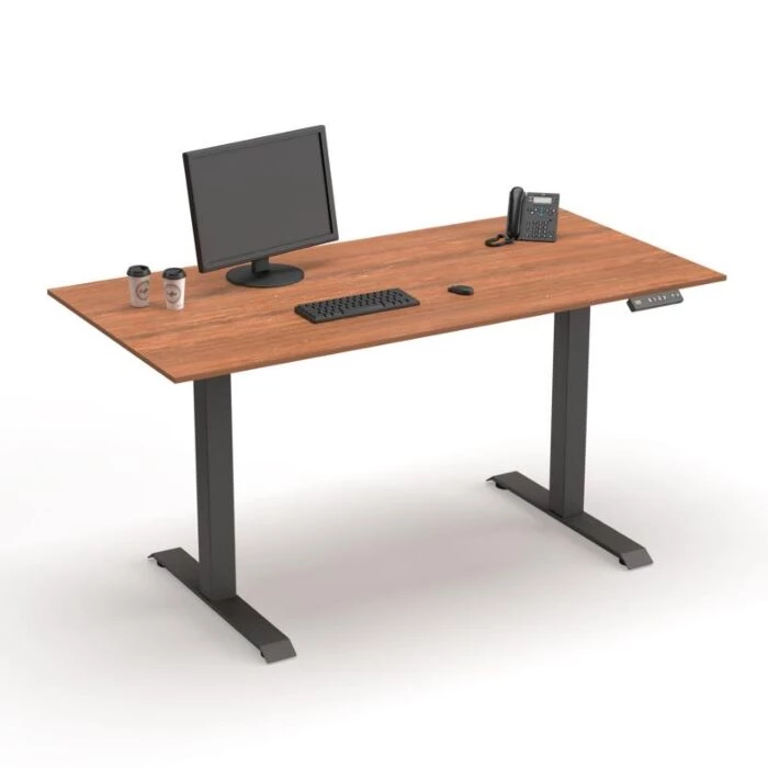 Sort bordstel med elektrisk højdejustering, der er perfekt til hjemmekontoret.