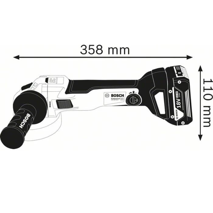 Denne lille akku-vinkelsliber fra Bosch Professional har et højt effektniveau og en sikker værktøjsstyring.