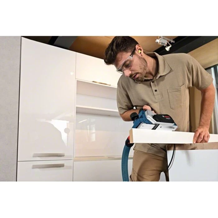 Bemærk: Høvlen er kompatibel med forskellige støvposer og parallelanslag fra Bosch Professional samt støvudsugningssystemet Bosch Click & Clean. Skal tilkøbes separat.