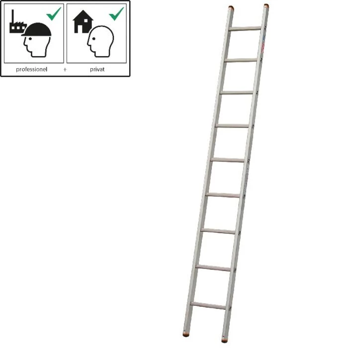 Denne stige er med ni trin, som alle er ribbede på begge sider, så du står ekstra sikkert og godt fast. Den er yderst slidstærk og lavet i højkvalitets aluminium.