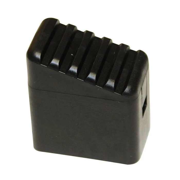 Sort fodkappe fra Krause, som er en reservedel til Krauses stiger, der har en fodstørrelse på 33 x 20 mm.