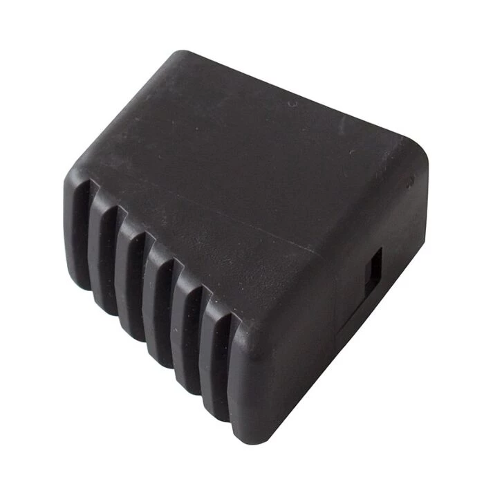 Sort fodkappe fra Krause, som er en reservedel til Krauses stiger, der har en fodstørrelse på 40 x 20 mm.