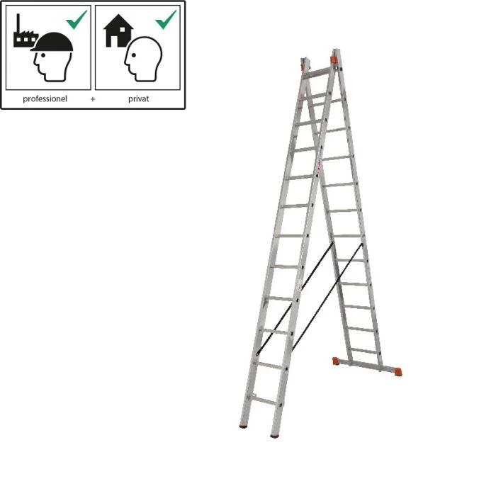 Denne smarte stige er udformet således, at den kan bruges som både en trappestige, en stige som skal læne sig mod en væg, samt som en udvidelse.