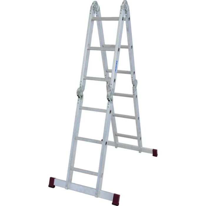 Den multifunktionelle stige består af 4 dele med 3 skridsikre trin på hver del, der kan give en arbejdshøjde på op til 4,4 meter, hvis multistigen er foldet helt ud. Fordi multistigen er leddelt, kan den ligeledes let foldes sammen efter brug, så den fylder minimalt ifm. opbevaring og transport.