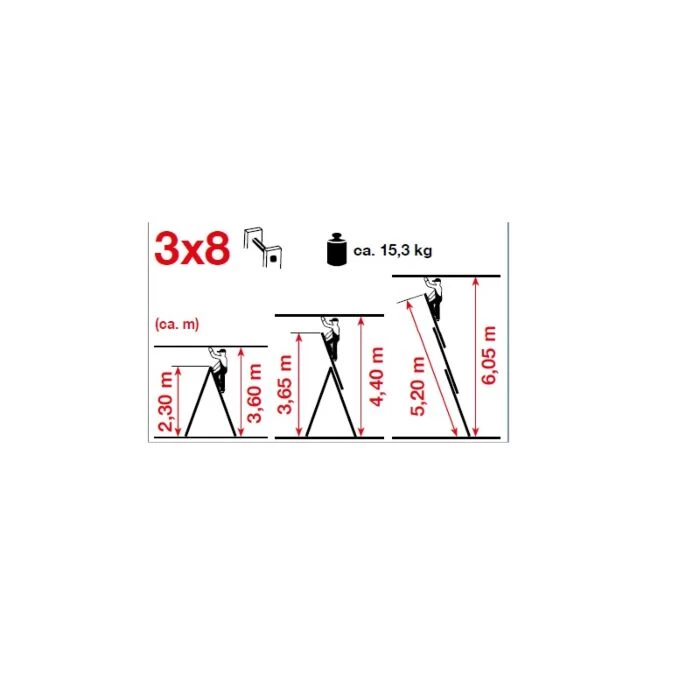 - Maks. højde: ca. 3,6 / 4,4 / 6,05 m