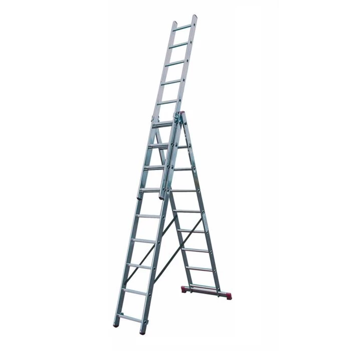 Kombinerbar stige i aluminium med en arbejdshøjde på 6,20 m, der kan fungere som anlægsstige, 2- eller 3-delt skydestige eller som wienerstige.