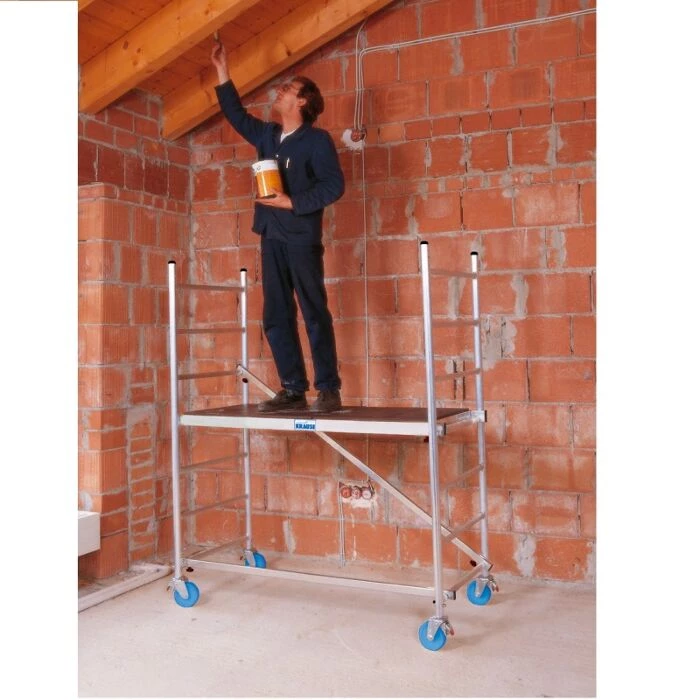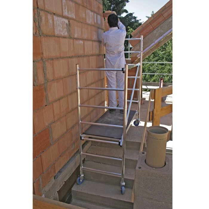 Stilladsets smalle design gør det ideelt til brug indendørs, da det kan køre igennem dørpaneler og den lette vægt på blot 24 kg, giver god manøvredygtighed. Platformen kan desuden justeres, så stilladset kan bruges på trapper eller hældninger samtidig med, at platformen holdes plan.