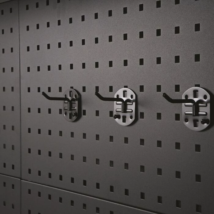 Du holder let styr på alt i værkstedet med disse to enkle, men praktiske, vægge med firkantede huller til at hænge kroge og værktøj i.