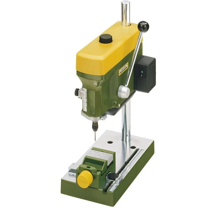 Smart og handy søjleboremaskine fra Proxxon. Maskinen har 3 hastighedsindstillinger, som bliver leveret af den meget lydløse motor. Gevindhuller til fastgørelse af koordinatbordet KT 70 (medfølger ikke).