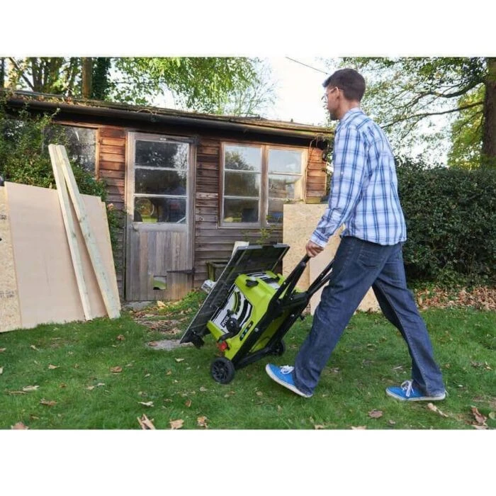 Saven er særdeles praktisk, både hvad angår opsætning og anvendelse. De aftagelige ben gør den let at både opbevare og transportere, ligesom hjulene på RTS1800EF-G letter transporten yderligere. Derudover er den med opbevaringsrum til værktøjet, så du har det hele samlet på et sted.