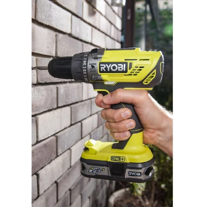 Slagboremaskine fra Ryobi med to gear for stor kontrol og alsidighed. De to gear har et slagtal på henholdsvis 6.500 og 23.400 slag i minuttet, og maskinen har en borekapacitet på 13 mm i murværk og stål og 38 mm i træ.