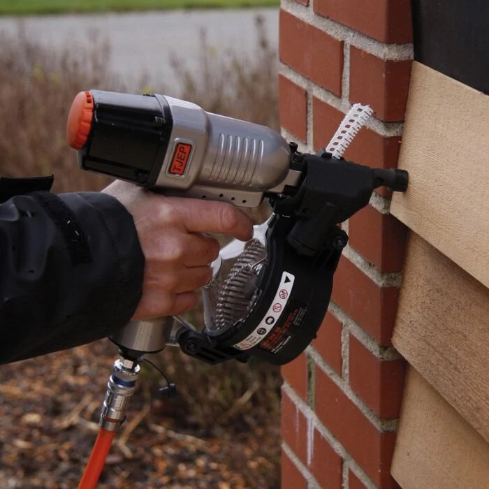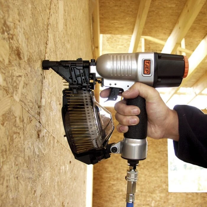 Let og handy tromlesømpistol til brug ved sømning af bl.a. trærammer, udhængsbrædder og facadebeklædning.