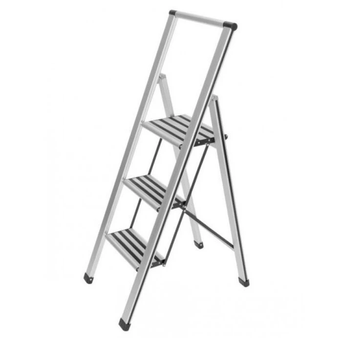 Luksustrappestige i robust aluminium med 3 trin fra Wenko. Stigen er solid og egner sig godt til arbejdet i hjemmet. Den har skridsikre XXL-trin, som er behagelige og stabile at stå på.